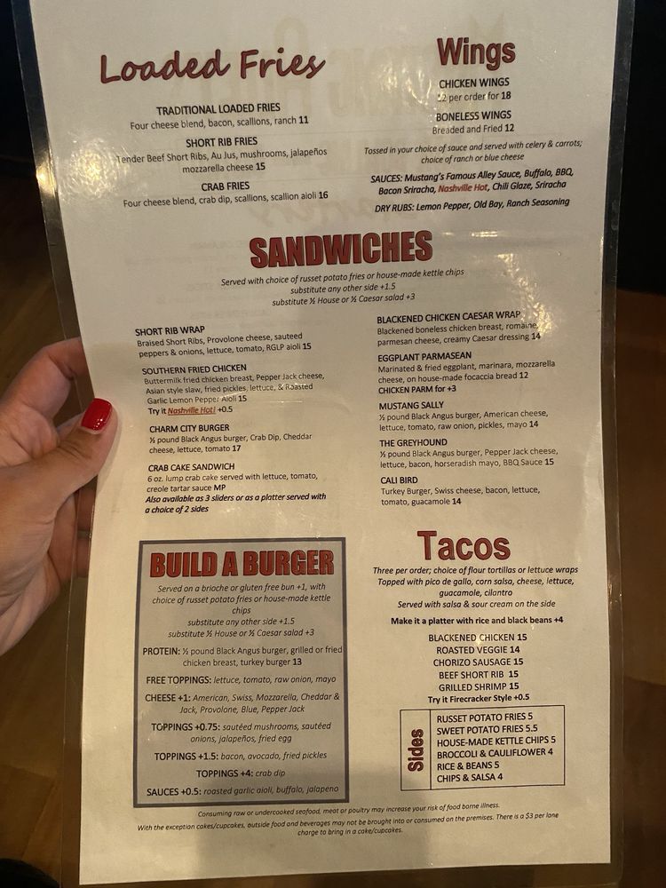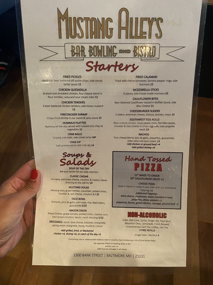 Located in Baltimore, MD, Mustang Alley's is a trendy, casual restaurant offering American cuisine with a focus on burgers. This bowling alley also provides a vibrant atmosphere with amenities such as outdoor seating, a full bar, and TV screens for added entertainment. The menu features a variety of dishes suitable for all ages, making it a great spot for groups or family dinners. Mustang Alley's accepts reservations and offers delivery and takeout options for convenience. With a strong emphasis on creating a fun and lively dining experience, this establishment is a top choice for those looking for a memorable meal in a unique setting.